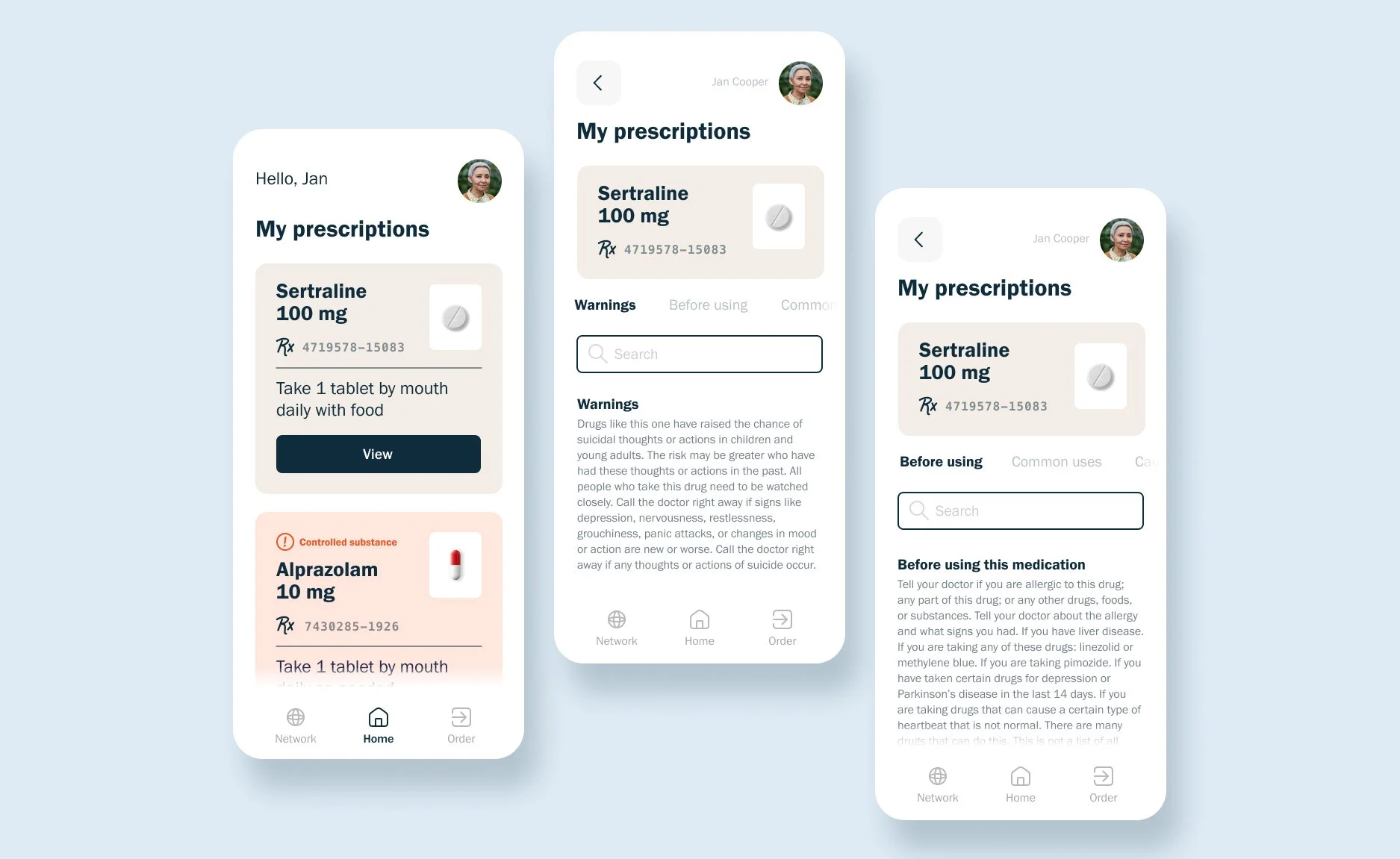 An online tool would sync with patients’ medications and provide them with instructions for use, reducing paper waste from pharmacies. An organized layout, jump-to nav, and a search feature would make finding information quick and seamless.